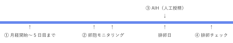 ② 月経一周期の間で4~5回の通院(治療開始日、卵胞モニタリング、人工授精当日、排卵チェックなど)