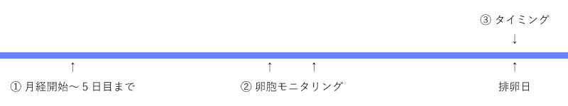 ② 月経一周期の間で2~4回の通院(治療開始日、卵胞モニタリング、排卵チェックなど)